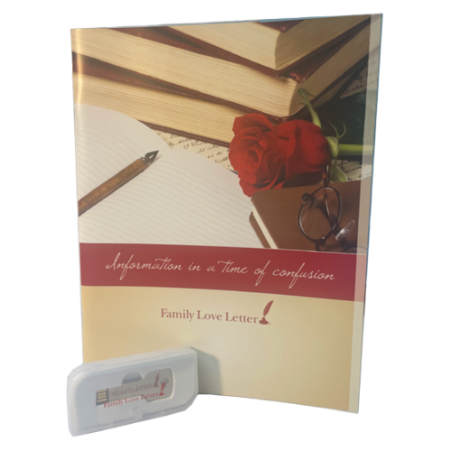 This kit includes a complimentary copy of the Family Love Letter Booklet, as well as a copy of The Family Love Letter Digital Drive. (Donna recommends a book with the key drive so you can work in sections or at different times.